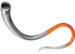 長くて細いという特徴を持つ、吸引タイプの急性期脳血栓回収用デバイス。