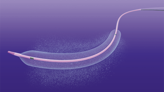 狭くなった血管を薬剤付きバルーンで拡張させることで、血管に薬剤が浸透し、
